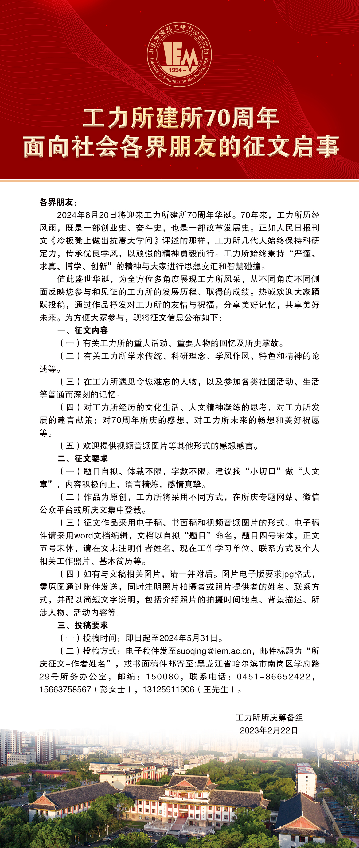 工力所建所70周年面向社會各界朋友的征文啟事