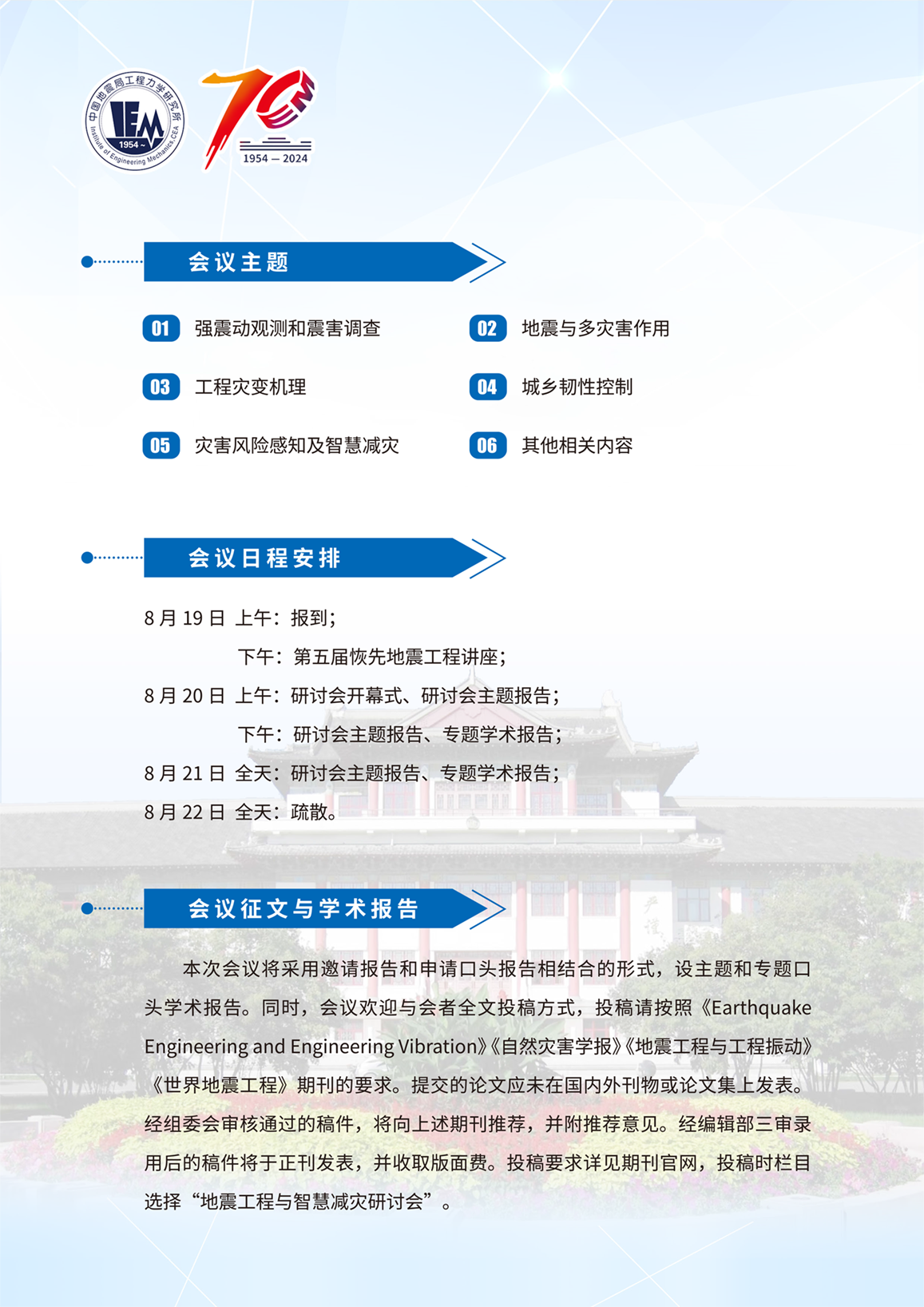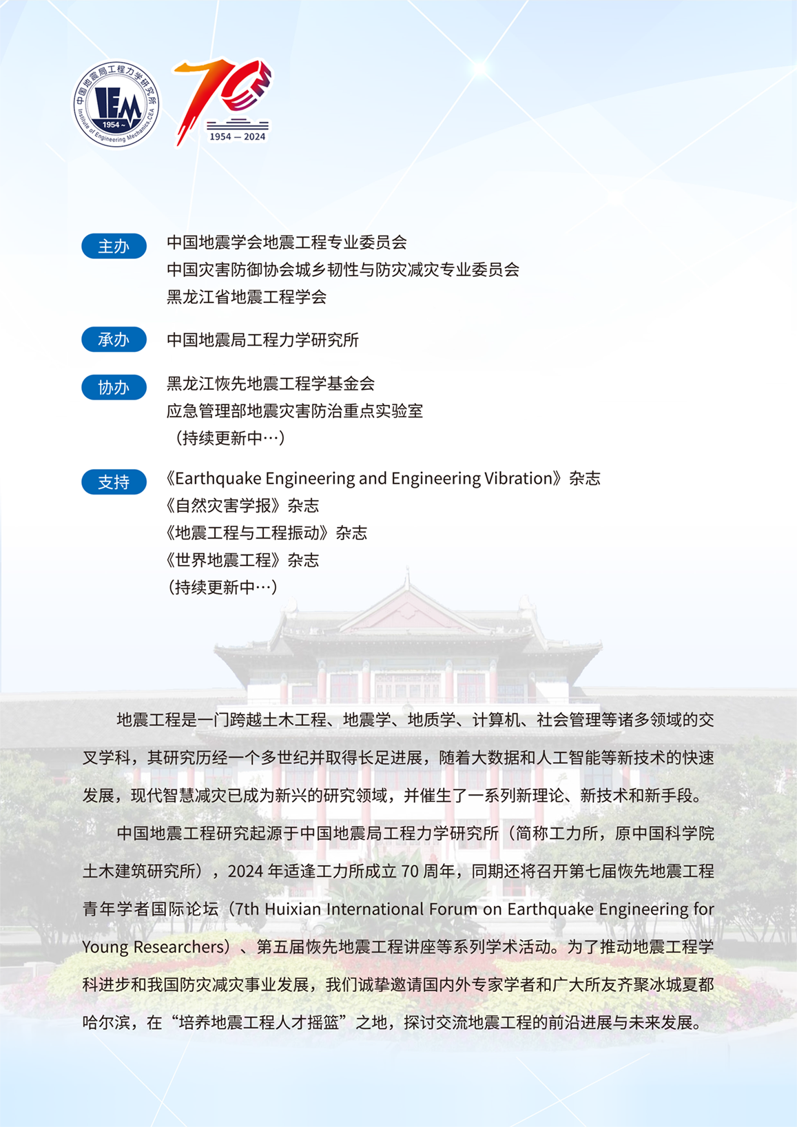 中國(guó)地震局工程力學(xué)研究所 地震工程與智慧減災(zāi)研討會(huì)暨第四屆韌性城鄉(xiāng)與防災(zāi)減災(zāi)論壇(一號(hào)通知)