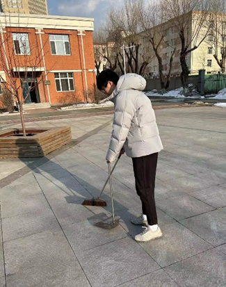 青年志愿者走上街頭開展清理打掃活動,清洗公交站牌、隔離帶、路燈桿等公共設施,清理積雪、垃圾,保持環境衛生。此外,青年志愿者深入我所研究生生活區,開展生活區清潔清理活動,清理盥洗室殘留的垃圾、水漬,清理室外人行道上的冰雪和垃圾,為研究生生活和出行提供了便捷。