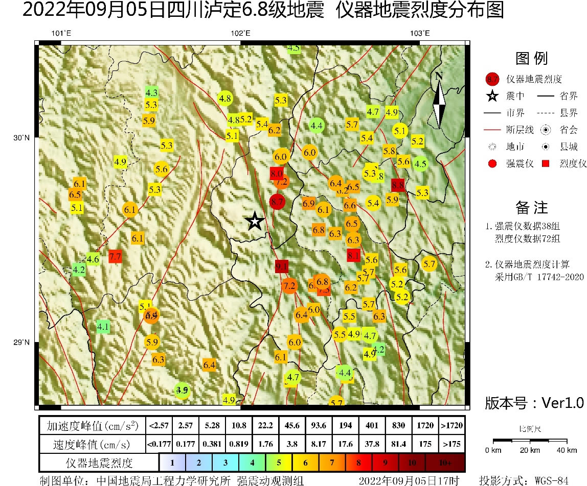 發(fā)布時間: 2022-09-08 點擊數量:54619月5日12時52分,四川甘孜州瀘定縣發(fā)生6.8級地震,此次地震獲取了大量高質量近場強震動觀測記錄。