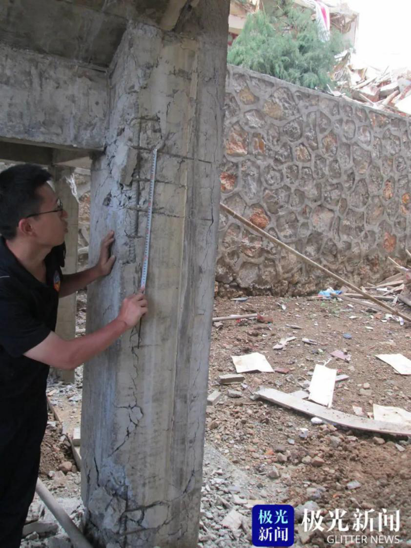 在這些地震現場,林旭川用尺子測量鋼筋混凝土結構構件破壞位置的厚度、裂縫寬度以及房屋的樓層變形,并相機拍照留存,以獲取結構參數與破壞特征參數。在勘察中,他聚精會神,有時發生了余震都沒有察覺。