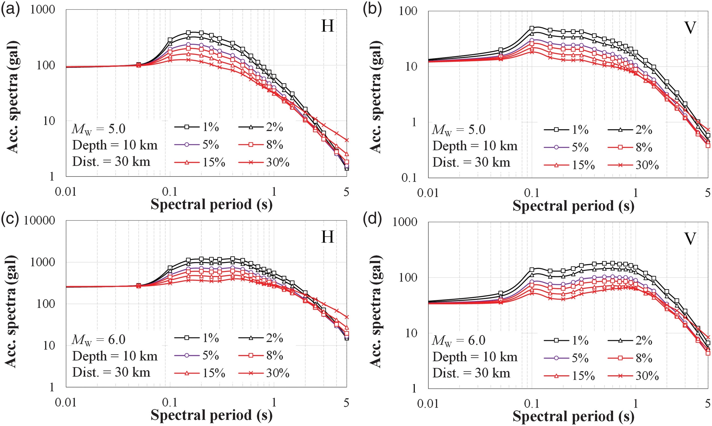 日本相模灣地區(qū)海域地震動水平向和豎向加速度譜阻尼修正系數(shù)