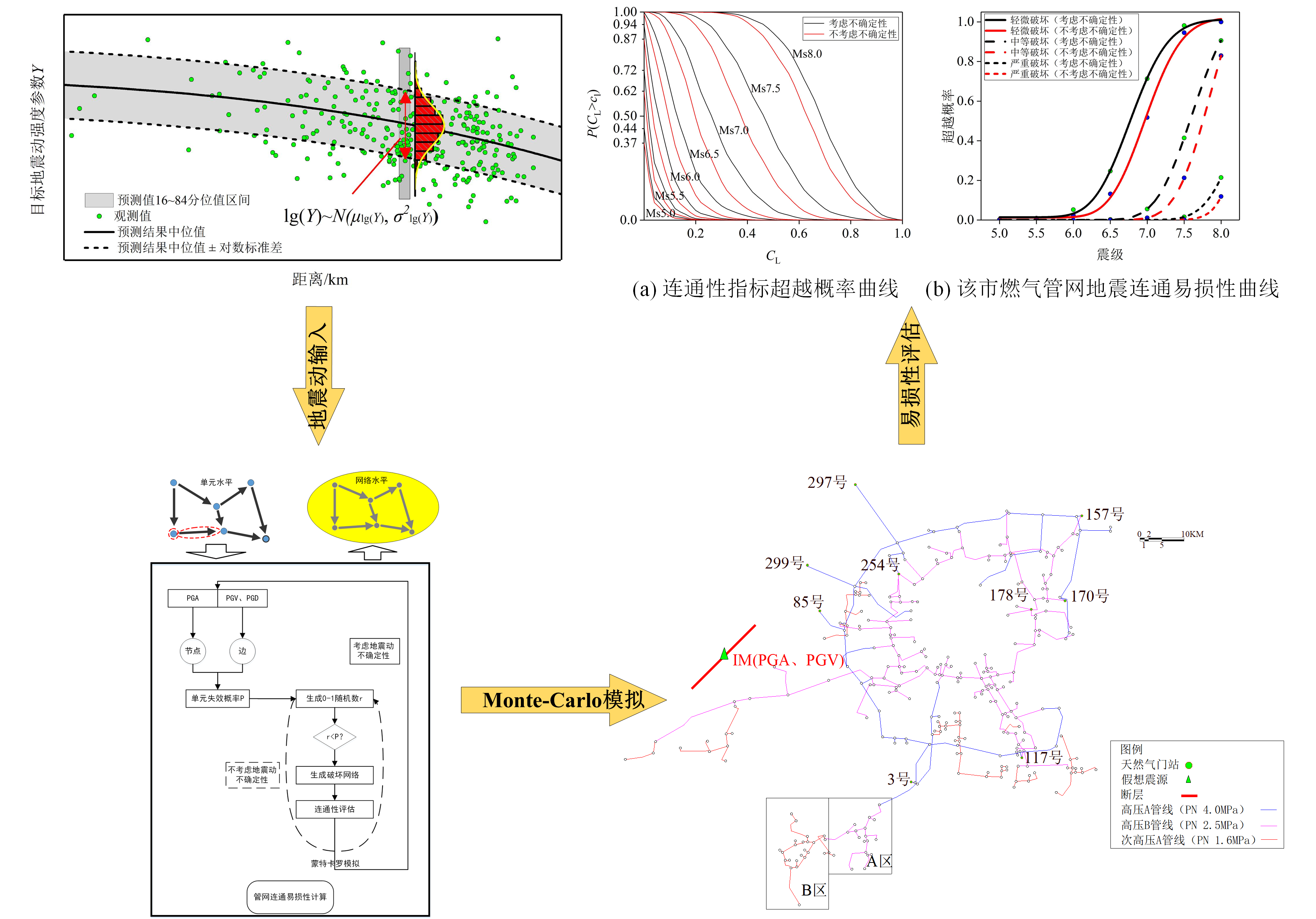發布時間: 2022-07-29 點擊數量:7567(1)以地震動預測方程(GMPE)作為燃氣管網地震動輸入依據,同時采用正態分布抽樣模擬隨機誤差變量的分布以體現地震動的不確定性,從單元失效擴散至網絡失效,給出了基于Monte-Carlo模擬方法的城市燃氣管網地震連通易損性分析流程。并以我國華北某城市為例,應用該流程對該市燃氣管網的地震連通易損性進行了分析,驗證了該流程的適用性,同時對網絡地震動輸入時是否考慮地震動不確定性對連通易損性評估結果的影響進行了對比研究,結果表明:地震動不確定性在評估城市燃氣管網的抗震能力時有削弱作用,不可忽視其對結果的影響。銜接該流程可進一步完善燃氣管網抗震韌性定量評估方法。相關技術細節可查閱發表在《哈爾濱工業大學學報》上的論文。